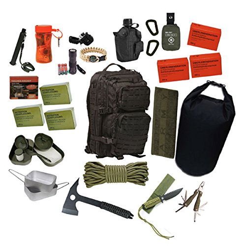 „72h Fluchtrucksack“ Liebe SURVIVAL FREUNDE und OUTDOOR FREAKS hier kommt der 72h FLUCHTRUCKSACK von ALFASHIRT. Wenn der NOTSTAND ausbricht und es schnell gehen muss, dann bleibt keine ZEIT um in RUHE die TASCHEN zu packen. In diesem RUCKSACK ist alles drin, was du auf der FLUCHT brauchst um 72h überleben zu können. Der Rucksack bietet folgende Features: Drybag Feldflasche 2 Kunststoff Karabiner> kleines MEDI PACK 3x Überlebensration 3x Notfall Verpflegung Handtuch Combat Messer Multi Tool Tactical Tomahawk 15m Nylon Seil Kochgeschirr Essgeschirr Esbit Kocher Taschenlampe Paracord-Armband mit Kompass Wasserfilter Sturmfeuerzeug Outdoor Survival Set Bear Bereite dich vor und sei für das SCHLIMMSTE gewappnet!